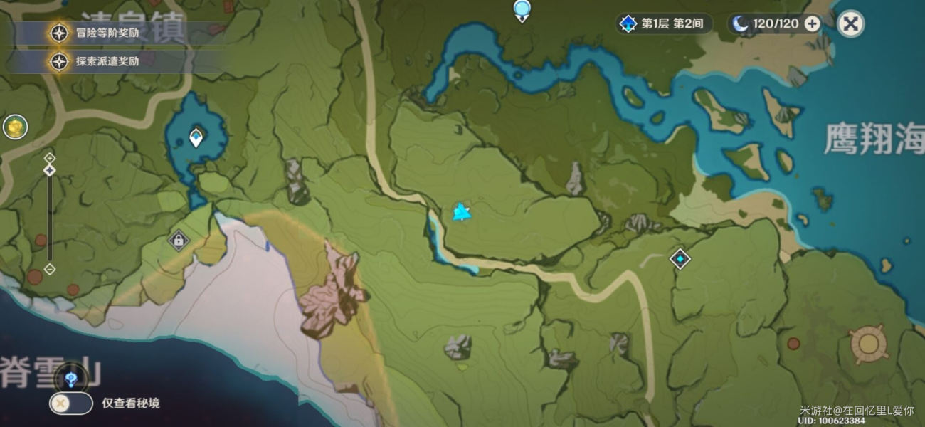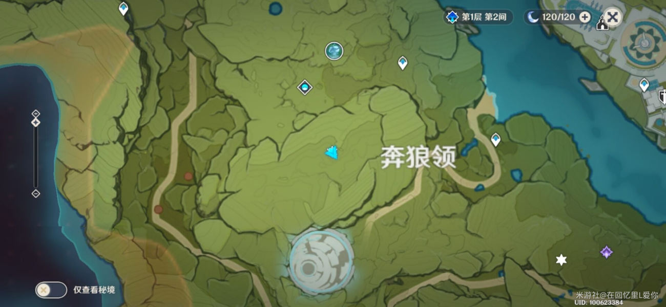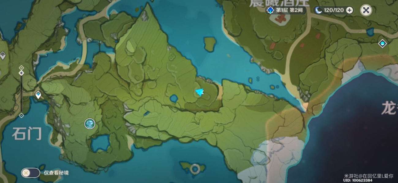 第五个位置如图所示,从秘境的点位过去,在山上就能找到。