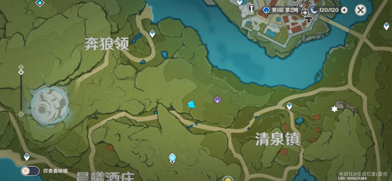 第三个从清泉镇传送点过去,地势不高,在图片的位置就可以找到。