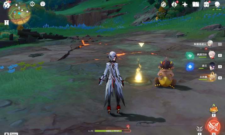 2、来到下图所示的位置,在地面上发现有很多坑洞,等待我们的新跟宠出现并挖掘,速度比较慢,可以在这里多走几遍。