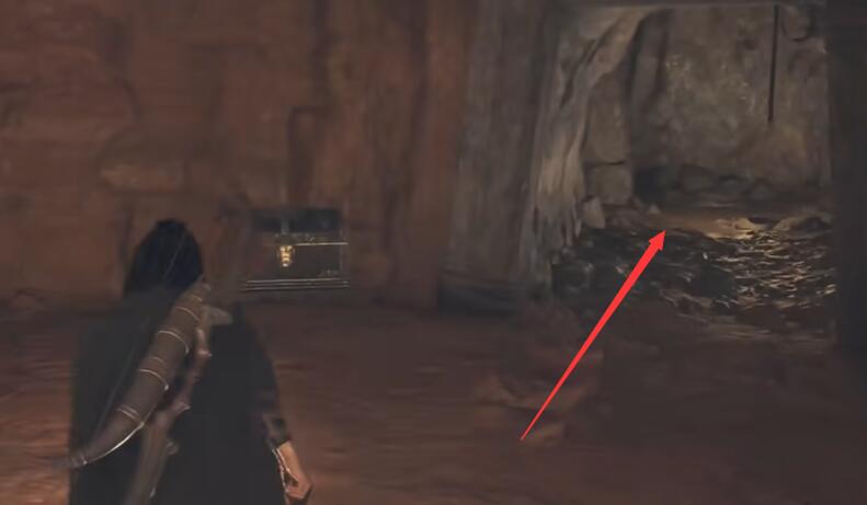 5、沿着水流冲出的通道移动,在来到外面后右转进入右侧的洞穴之中。