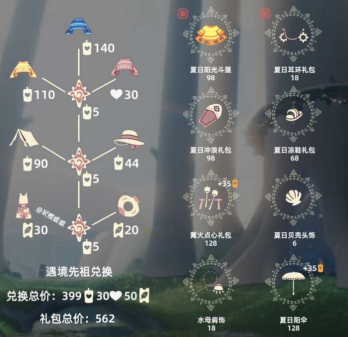其余的冲浪板、篝火、凉鞋、贝壳头饰、水母肩饰、夏日阳伞等都是复刻礼包。